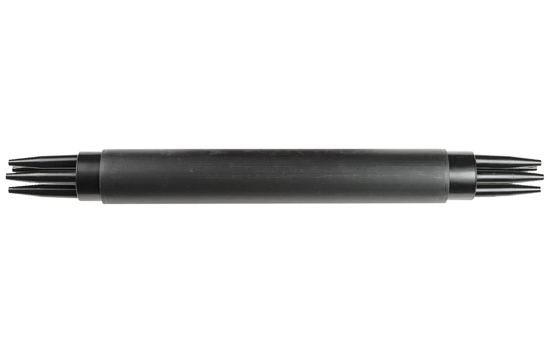 Способ герметизации вводов кабелей, осуществляется с помощью термоусаживаемых трубок ТУТ. Круглые патрубки на оголовнике муфты изначально герметичны и имеют ступенчатую форму с разными диаметрами. Срезая патрубок в определенном месте можно подобрать отверстие максимально близкое к диаметру вводимого кабеля. Таким образом, исключается излишнее натяжение ТУТ после усадки при вводе относительно тонких кабелей. Все патрубки муфты оснащены также индивидуальными узлами крепления ЦСЭ.